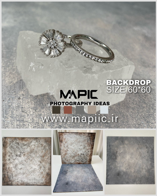 برای سوژههای کوچکتر مثل زیورآلات بهتر است که از بک دراپهای برجسته و پربافت استفاده شود تا خالی بودن فضای اطراف سوژه را پوشش دهد و یک دکور کامل باشد. رنگ بک دراپ را هم میتوان با توجه به رنگهای استفاده شده در آن جواهر انتخاب کرد.